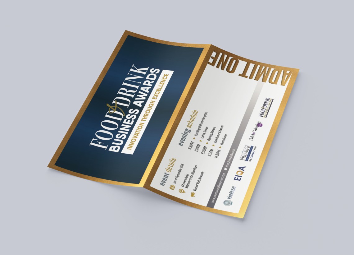 Commissioned byPremier Publishing & Events to execute branding and event collateral roll-out for inaugural Food and Drinks Business Awards – the first of its kind to focus on the production & manufacturing F&D Industry.