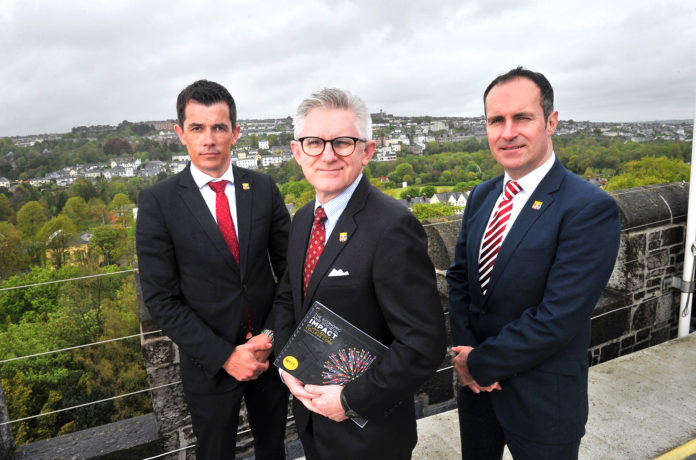 Pictured in UCC at the report launch were co-author Mark Hutchinson, Professor of Finance, Cork University Business School; Professor Patrick O’Shea, UCC President and President of the Irish Universities Association with co-author and David Hogan, Finance Researcher, Cork University Business School, UCC. (Pic Daragh Mc Sweeney/Provision)